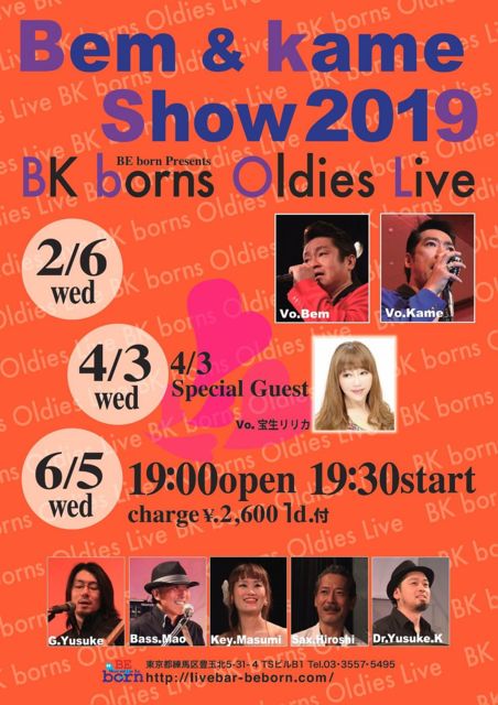 ÎýÇÏmusic & live bar BEborn ËÜÆü¡¢2·î6Æü(¿åÍËÆü)¤Ï¡¢ ¡ÚBem & Kame Show¡Û open 19:00 start 19:30 charge2600±ß (1¥É¥ê¥ó¥¯ÉÕ¤¡Ë 1st stage 19:30-20:00 2nd stage 20:30-21:00 3rd stage 21:30-22:00 ÌÀÆü¡¢2·î7Æü(ÌÚÍËÆü)¤Ï¡¢ ¡Ú¥Ö¥ë¡¼¥¹¥»¥Ã¥·¥ç¥ó¡Û open 19:00 charge 1600±ß (1¥É¥ê¥ó¥¯ÉÕ) ¸«³Ø1000±ß (1¥É¥ê¥ó¥¯ÉÕ¡Ë ¥Ö¥ë¡¼¥¹Ãæ¿´¤Î ¥»¥Ã¥·¥ç¥ó¥Ê¥¤¥È¡£ ³Ú´ï¡¢ÉèÌÌÅù¡¢¼ê¤Ö¤é¤Ç¤âÂç¾æÉסª ¤É¤Ê¤¿¤Ç¤â»²²Ã¤Ç¤¤Þ¤¹¡£ À§Èó¡¢Í·¤Ó¤Ë¤¤¤é¤·¤Æ¤¯¤À¤µ¤¤¤Í¡£ ¥»¥Ã¥·¥ç¥ó½é¤á¤Æ¤ÎÊý¤âÂç´¿·Þ¡ª ¢¨¿©¤Ùʪ»ý¤Á¹þ¤ß¼«Í³