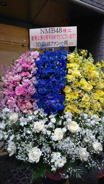 ご報告遅れて申し訳ありません。 既に終了した企画になりますのでご報告のみとなります。 2019/1/1(火)、NMB48劇場にて行われました新春特別公演において 全コミュニティ合同にてスタンドフラワーを贈らせて頂きました。(添付写真参照) 全コミュニティ合同より \500-(1界隈につき) カンパ金は特に集めません。 今回はコミュニティ口座より出させていただきました。