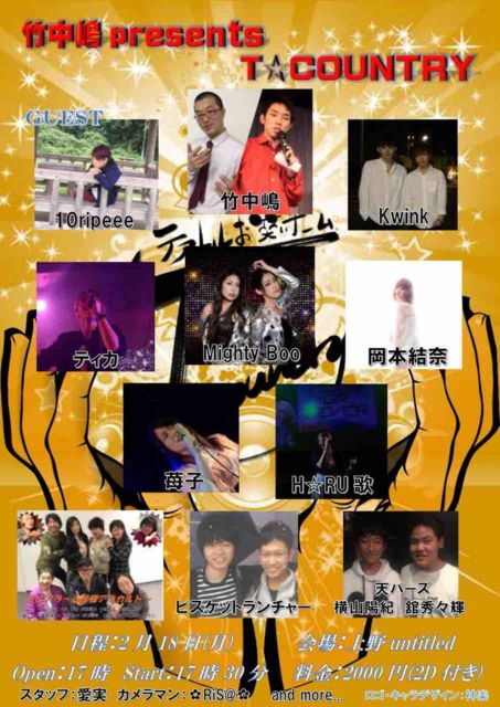 ¡ØT¡ùCOUNTRY¡Ù ¡ÚÆü»þ¡Û2·î18Æü(·î) ¡Ú¾ì½ê¡Ûuntitled ¡ÚºÇ´ó¤ê±Ø¡Û£Ê£Ò¾åÌî±Ø¸ø±à¸ý ¡Ú»þ´Ö¡Û³«¾ì17¡§00 ³«±é17¡§30 ¡Ú´ÑÍ÷ÎÁ¶â¡Û2000±ß(2DÉÕ¤)