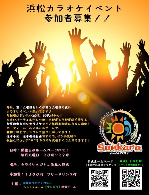 ¤³¤Î¥¤¥Ù¥ó¥È¤Ï¡Ä ¡Ö¤È¤Ë¤«¤¯²Î¤¦¤³¤È¤¬¹¥¤¡×¤Ê¿Í㤬¡Ö¹¥¤¤Ê²Î¤ò¹¥¤¤Ê¤è¤¦¤ËÁ´ÎϤDzΤ¨¤ë¡×¥«¥é¥ª¥±¥¤¥Ù¥ó¥È¤òÌܻؤ·¤ÆÀŲ¬¸©ÈØÅĻԤÇËè·î³«ºÅ¤·¤Æ¤¤¤Þ¤¹¡£ ǯÎð¤ä¶Ê¤Î¥¸¥ã¥ó¥ë¡¢¾å¼ê¤¤²¼¼ê¤Ï´Ø·¸Ìµ¤·¡ª³Ú¤·¤¯²Î¤¨¤ë¤Î¤¬1È֤Ǥ¹(^-^)/ ¾¯¤·¤Ç¤âµ¤¤Ë¤Ê¤Ã¤Æ¤¤¤¿¤À¤±¤¿Êý¤Ï¤ªµ¤·Ú¤Ë¤ªÌ䤤¹ç¤ï¤»¤¯¤À¤µ¤¤¢ö ¤ß¤ó¤Ê¤Ç³Ú¤·¤¤»þ´Ö¤ò²á¤´¤·¤Þ¤·¤ç¤¦¢ö ¢¢°Ê²¼¾ÜºÙ¢¢ ¢¨»²²Ã¤·¤Æ¤¯¤À¤µ¤ëÊý¤Ï¤Þ¤º°Ê²¼¤ÎÃí°Õ»ö¹à¤òÆÉ¤ó¤Ç¤«¤é¥á¥Ã¥»¡¼¥¸¤ò¤ª´ê¤¤¤·¤Þ¤¹¡£ ¡ÚÃí°Õ»ö¹à¡Û •¾¤Î¿Í¤¬²Î¤Ã¤Æ¤¤¤ë»þ¤ËÂçÀ¼¤ÇÏäò¤¹¤ë¡¢·ÈÂÓ¤ò¤º¤Ã¤È¿¨¤Ã¤Æ