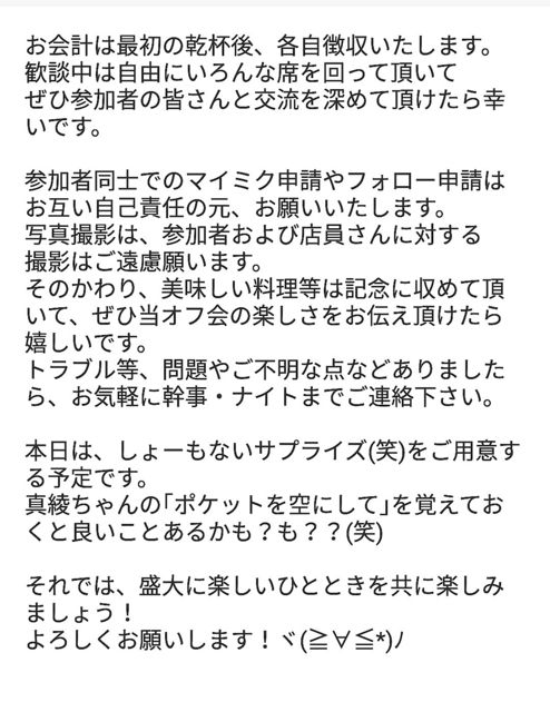 オフ会(飲み会)を開催させて頂きたく告知いたします。