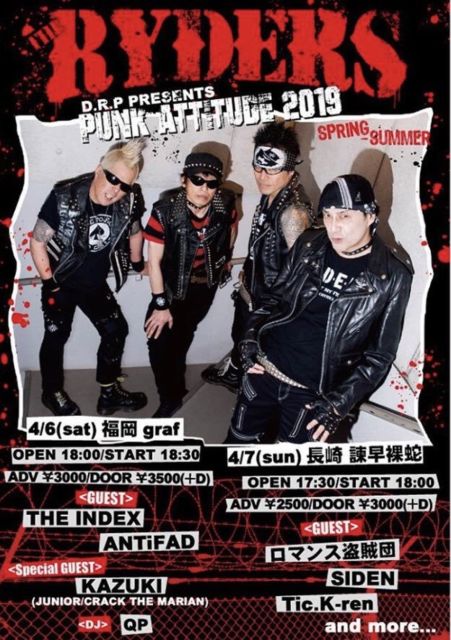 るんるんBAND LIVE衝撃 17:30 DOOR OPEN 18:00 GIG ON START ADV\2500 DAY\3000 (+1D\500) <SHOW TIME> 18:00-18:30 SIDEN 18:45-19:15 ロマンス盗賊団 19:30-20:00 Tic.K-ren 20:15-21:15 THE RYDERS 21:30-22:00 WANNA 22:45〜打ち上げ(会場にて) 宜しくお願いします。