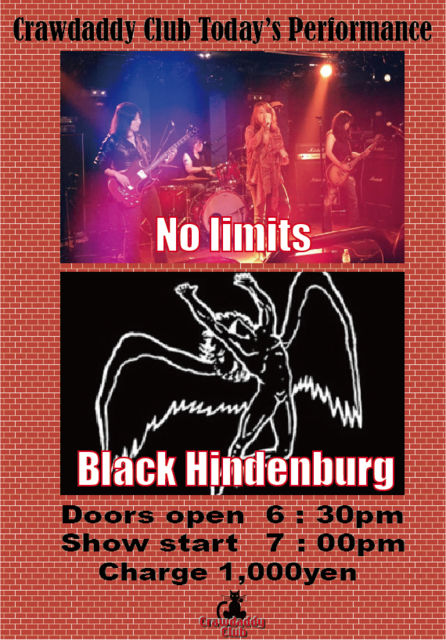4/7 ËÜÆü¤Î¥é¥¤¥Ö¡¡ No limits(as FREE) & Black Hindenburg (as Led Zeppelin) Live¡¡ OPEN 18:30 START 19:00 CHARGE 1000±ß