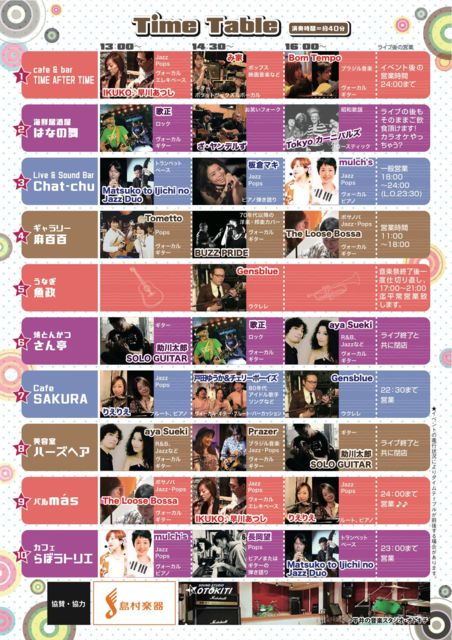 午後1時から5時までの4時間、どこかしこで音が聴こえてきますよ〜♪