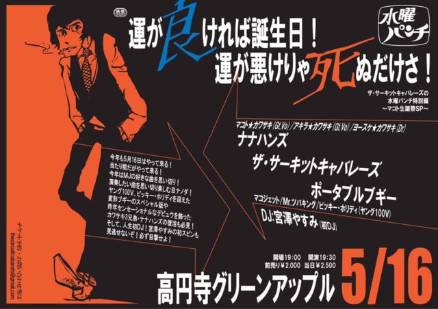 5·î16Æü(ÌÚ) ÅìµþÅÔ ¹â±ß»û ¥°¥ê¡¼¥ó¥¢¥Ã¥×¥ë¡¡ http://www.greenapple.gr.jp/ ¡Ö¿åÍ˥ѥó¥ÁÆÃÊÌÊÔ ¡Á¥Þ¥³¥ÈÀ¸Ãº×SP¡Á ±¿¤¬Îɤ±¤ì¤ÐÃÂÀ¸Æü¡ª±¿¤¬°¤±¤ê¤ã»à¤Ì¤À¤±¤µ¡ª ¥Ñ¡¼¥È2¡× ½Ð±é:¥Ý¡¼¥¿¥Ö¥ë¥Ö¥®¡¼(¥Þ¥³¥¸¥§¥Ã¥È+¥Ä¥Ð¥¥ó¥°+¥Ó¥Ã¥¡¼¥Û¥ê¥Ç¥£)/¥¶¡¦¥µ¡¼¥¥Ã¥È¥¥ã¥Ð¥ì¡¼¥º/¥Ê¥Ê¥Ï¥ó¥º(¥«¥ï¥µ¥3·»Äï:¥Þ¥³¥È¡ú¥«¥ï¥µ¥)+¥¢¥¥é¡ú¥«¥ï¥µ¥+¥è¡¼¥¹¥±¡ú¥«¥ï¥µ¥) DJ:µÜß·¤ä¤¹¤ß open19:00 start19:30 Á°Çä¤ê2000±ß ÅöÆü2500±ß ¶¦¤Ë+1DRINK