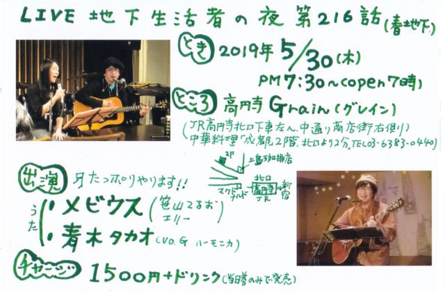 ¡ü20£±9ǯ5·î30Æü(ÌÚ) Ìë7»þȾ¡Á ¡ÖÃϲ¼À¸³è¼Ô¤ÎÌë¡¡Âè216Ïá׽ÕÃϲ¼ ¾ì½ê¡¦¹â±ß»ûGrain¤Ë¤Æ (JR¹â±ß»û±ØË̸ý²¼¼Öº¸¤Ø¡¢ÃæÄ̤꾦ʳ¹±¦Â¦¡¦Ãæ²ÚÎÁÍý¡ÖÀ®ÅÔ¡×2³¬¡¢Ë̸ý¤è¤êÅÌÊâ2ʬ) TEL03-6383-0440 OPEN 19:00¡¿START 19:30¡¡¡¡ 1500±ß+¥É¥ê¥ó¥¯ ½Ð±é¡ü¥á¥Ó¥¦¥¹(ºû»³¤Æ¤ë¤ª¡õ¥¨¥ê¡¼) ¡üÀÄÌÚ¥¿¥«¥ª ¤¿¤Ã¤×¤ê²Î¤¤¤Þ¤¹¡£°ì½ï¤Ë¤â²¿¶Ê¤«¤ä¤ê¤Þ¤¹¡£ ¥Õ¥ê¡¼¥¹¥Ú¡¼¥¹¤Ê¤Î¤Ç¡¢¤ªµ¤·Ú¤Ë¤É¤¦¤¾¡¼¢ö