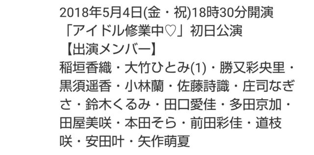 5月4日で、劇場公演デビュー1周年になります。 コミュとしてお祝いをしたいと考えています。籠花(5,000円)と寄せ書き(色紙タイプ)をします※ (※)4月20日に、郡司さん確認済み 賛同いただける方は、 「賛同します」とコメントください。 賛同費:1口500円です。 下記日程の握手会の会場で受け付けます。 (日程) 4月29日、30日 幕張メッセ 5月3日、 インテックス大阪 5月5日、6日 パシフィコ横浜