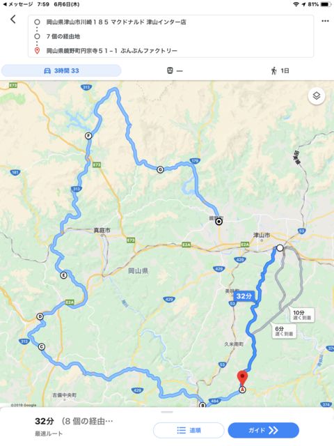 £¶·î£±£¶Æü ÆüÍËÆü ¹â®¥Ä¡¼¥ê¥ó¥°¥×¥é¥óÍøÍѤˤơª https://www.michitabi.com/roundtour/touring2019/chugoku/ ¥ë¡¼¥È³µÎ¬ https://goo.gl/maps/3xFNWbgr3HAaWrV69 ²ÃÀ¾¥µ¡¼¥Ó¥¹¥¨¥ê¥¢²¼¤ê £¸»þ£³£°Ê¬ ½¸¹ç½Ðȯ ¡ÁÄÅ»³¥¤¥ó¥¿¡¼¹ß¤ê¤ë ¥Þ¥¯¥É¥Ê¥ë¥ÉÄÅ»³¥¤¥ó¥¿¡¼Å¹ ²¬»³¸©ÄÅ»³»ÔÀîºê£±£¸£µ £°£¸£¶£¸¡Ý£²£¶¡Ý£´£¸£°£± £¹»þ£³£°Ê¬ ½¸¹ç½Ðȯ R429¡ÁK350~Èþºî¤ä¤Þ¤Ê¤ß³¹Æ»¡ÁR484¡Á¥Õ¥¡¥ß¥ê¡¼¥Þ¡¼¥È ·úÉôÂçÅÄŹ¡ÊµÙ·Æ¡Ë¡Á±üµÈÈ÷³¹Æ»¡Á JA¤Ó¤Û¤¯¥³¥¹¥â¥¹¤ÎΤ¡ÊµÙ·Æ¡Ë¡ÁR313¡ÁÌÚ»³³¹Æ»¡ÁÆüÌî¾å¤½¤Ð½è±À¾åÄâ¡ÊÃë¿©¡Ë R181