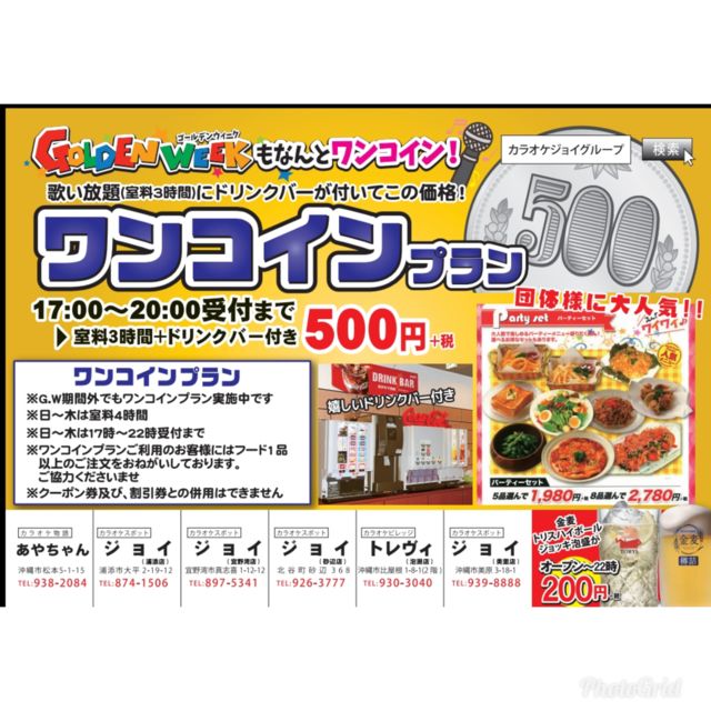 チルカラin沖縄県 ライブ終わりに、皆んなでカラオケで盛り上がりましょう\(^o^)/ 2019年6月1日:土曜日 時間:20時00分〜23時00分まで。 2019年6月2日:日曜日 時間:19時00分〜23時00分まで。 どちらかでも参加OKです↑↑両方参加もOKです↑↑ https://www.churaguru.net/shop/index.aspx?shop_id=206225 カラオケスポット:ジョイ宜野湾店。 待ち合わせ場所: カラオケスポット:ジョイ宜野湾店:受付前に待ち合わせ よろしくお願い致します。 時間:上記記載(6月1日と6月2日で時間が違います