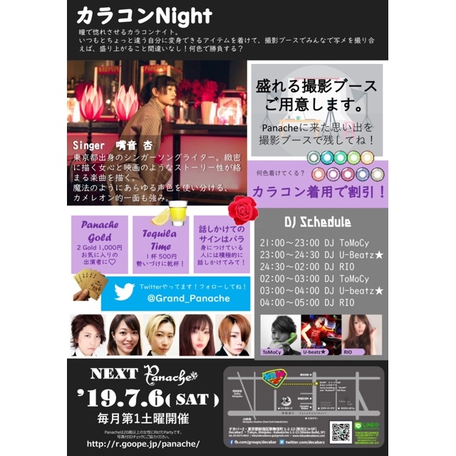 Æ·¤Ç¹û¤ì¤µ¤»¤ë¥«¥é¥³¥ó¥Ê¥¤¥È¡£ ¤¤¤Ä¤â¤È¤Á¤ç¤Ã¤È°ã¤¦¼«Ê¬¤ËÊѿȤǤ¤ë¥¢¥¤¥Æ¥à¤òÃ失¤Æ¡¢»£±Æ¥Ö¡¼¥¹¤Ç¤ß¤ó¤Ê¤Ç¼Ì¥á¤ò»£¤ê¹ç¤¨¤Ð¡¢À¹¤ê¾å¤¬¤ë¤³¤È´Ö°ã¤¤¤Ê¤·¡ª ²¿¿§¤Ç¾¡É餹¤ë¡© ¡ú¥«¥é¥³¥óÃåÍѤǤ´»²²Ã¤ÎÊý¤Ï¡¢³ä°úÎÁ¶â2,000yen¤ÇÆþ¾ì²Ä¡ú ¡úGuest Show Singer:Óܲ» °É ¥·¥ó¥¬¡¼¥½¥ó¥°¥é¥¤¥¿¡¼¡£ËâË¡¤Î¤è¤¦¤Ë¤¢¤é¤æ¤ëÀ¼¿§¤ò»È¤¤Ê¬¤±¤ë¥«¥á¥ì¥ª¥óŪ°ìÌ̤⶯¤ß¡£ ¡úÀ¹¤ì¤ë¡ª»£±Æ¥Ö¡¼¥¹¡ª¡ª¤ªÍ§Ã£Æ±»Î¡¢¤½¤ÎÆü½Ð²ñ¤Ã¤¿Êý¤È¡¢»×¤¤½Ð¤Î°ìËç¤ò¢ö ¡úÏ䷳ݤ±¤Æ¤Í¤Î¥µ¥¤¥ó¤Ï¥Ð¥é¡¡ ¥Ê¥ó¥ÑÂÔ¤Á¤âOK¡ª ¡ú¥Æ¥¡¼¥éTime¡¡Àª¤¤¤Å¤±¤ËShot¤Ç´¥ÇÕ ¡úTIP¤ò
