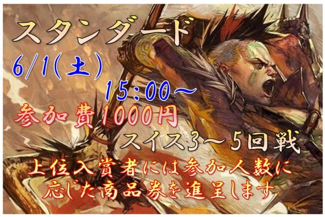 DCI¸øÇ§¡¡¥¹¥¿¥ó¥À¡¼¥ÉÂç²ñ ¤Î¤´°ÆÆâ¤Ç¤¹¡£ ¼õÉÕ¤Ï ÅöÆü¡¡12¡§00¡Á15¡§00 ¤È¤Ê¤Ã¤Æ¤ª¤ê¤Þ¤¹¤Î¤Ç»²²Ã´õ˾¤Î¾ì¹ç¤Ï¾åµ¤Î»þ´Ö¤ËÃÙ¤ì¤Ê¤¤¤è¤¦¤Ë¤´ÍèŹ¤¯¤À¤µ¤¤¡£ÅöÆü¼õÉÕ¤ÏÀèÃå½ç¤È¤Ê¤ê¤Þ¤¹¡£ »²²ÃÈñ¤Ï1000±ß¤Ç¤¹¡£ ¹½ÃÛ·Á¼°¤Ï¥¹¥¿¥ó¥À¡¼¥É¡Ê¡Ö¥¤¥¯¥µ¥é¥ó¡×¡Ö¥¤¥¯¥µ¥é¥ó¤ÎÁê¹î¡×¡Ö¥É¥ß¥Ê¥ê¥¢¡×¡Ö´ðËÜ¥»¥Ã¥È2019¡×¡Ö¥é¥ô¥Ë¥«¤Î¥®¥ë¥É¡×¡Ö¥é¥ô¥Ë¥«¤Î¸¥¿È¡×¡ÖÅôÁèÂçÀï¡×¤¬»ÈÍѲÄǽ¡Ë¤È¤Ê¤ê¤Þ¤¹¡£ ¥¹¥¿¥ó¥À¡¼¥É¡¦¥Õ¥©¡¼¥Þ¥Ã¥È¤Ë¤Ï¶Ø»ß¥«¡¼¥É¤¬¤¢¤ê¤Þ¤¹¡¢¾ÜºÙ¤ÏMTG¸ø¼°HP¤ò¤´³Îǧ²¼¤µ¤¤¢ªhttps://magic.wizards.com/ja/formats/standard ÂÐÀïÊý¼°