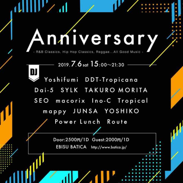 R&B CLASSICS、HIP HOP CLASSICS中心で、GOOD MUSICをお届けします!! お子様連れ可になります。 普段なかなかイベントに行けない方も、来やすいふんいきなので、是非遊びに来てください!! ご質問ある方も、お気軽にお問い合わせください!! Anniversary 7月6日 (土) 15時〜21時30 2500円1D、ゲスト2000円1D 中高生 1000円 小学生以下 フリー