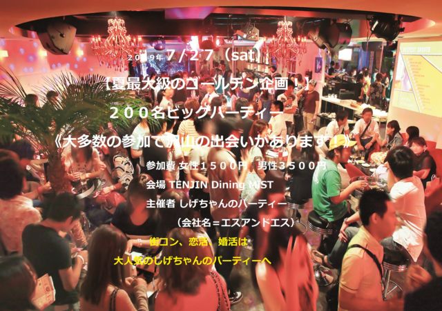¡ù¡ù¡ù¥Ñ¡¼¥Æ¥£¡¼¾ÜºÙ¡Ê¿½¹þ¤Ï²¼µ¤Î³ÆHP¡¢¥á¡¼¥ë¡¢¤ªÅÅÏäè¤ê¤ª´ê¤¤Ãפ·¤Þ¤¹¡£¡Ë¡ù¡ù¡ù ¡ü£··î£²£·Æü¡ÊÅÚ¡Ë¡§¡Ú²ÆºÇÂçµé¤Î¥´¡¼¥ë¥Ç¥ó´ë²è¡Û£²£°£°Ì¾¥Ó¥Ã¥°¥Ñ¡¼¥Æ¥£¡¼ ¡ÔÁí»²²ÃͽÁۤϲƺÇÂçµé£±£²£°¡Á£±£µ£°Ì¾¡ª¡öÂô»³¤Î½Ð²ñ¤¤¤¬¤¢¤ê¤Þ¤¹¡£¡Õ ¡ý¡Ú¤ªÃΤ餻¡ÛËÜÆü¤ÎHP¤È¥á¡¼¥ë¤Î¿½¹þ¥Á¥§¥Ã¥¯¤Ï17:30¤Ç½ªÎ»¤Î°Ù¡¢°Ê¹ß¤Ï¸æÅÅÏäǤΤª¿½¹þ¤ò¤ª´ê¤¤Ãפ·¤Þ¤¹¡£¡Ê090-5938-7557¤Ø¡Ë¡¡¡Ô¡úľÀÜ¡¢ÅÓÃæ»²²Ã¤âOK¤Ç¤¹¡£¡ú¡Õ ¡Ú²ñ¾ì¡ÛTENJIN Dining MiST¡Ê¥ß¥¹¥È¡Ë ¡Ú¼õÉÕ¡Û£±£¹¡§£´£°¡Á ¡Ú¥¹¥¿¡¼¥È¡Û£²£°¡§£°£°¡Á£²£²¡§£³£° ¡ÚÎÁ¶â¡Û½÷À£±£µ£°£°±ß¡¡