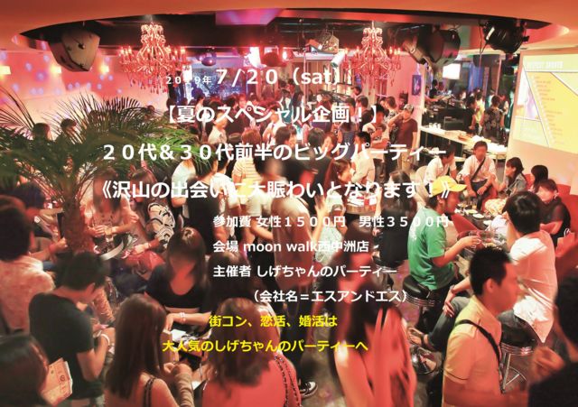 ¡ù¡ù¡ù¥Ñ¡¼¥Æ¥£¡¼¾ÜºÙ¡Ê¿½¹þ¤Ï²¼µ¤Î³ÆHP¡¢¥á¡¼¥ë¡¢¤ªÅÅÏäè¤ê¤ª´ê¤¤Ãפ·¤Þ¤¹¡£¡Ë¡ù¡ù¡ù ¡ü£··î£±£³Æü¡ÊÅڡˡڲƤΥ¹¥Ú¥·¥ã¥ë´ë²è¡Û£±£°£°Ì¾¡ÊÂ絬Ìϡ˥ѡ¼¥Æ¥£¡¼ ¡ÔÁí»²²ÃͽÁÛ¤ÏÂç¿¿ô£¸£°¡Á£±£°£°Ì¾¡ª¡öÂô»³¤Î½Ð²ñ¤¤¤¬¤¢¤ê¤Þ¤¹¤è¡£¡Õ ¡ý¡Ú¤ªÃΤ餻¡ÛËÜÆü¤ÎHP¤È¥á¡¼¥ë¤Î¿½¹þ¥Á¥§¥Ã¥¯¤Ï17:30¤Ç½ªÎ»¤Î°Ù¡¢°Ê¹ß¤Ï¸æÅÅÏäǤΤª¿½¹þ¤ò¤ª´ê¤¤Ãפ·¤Þ¤¹¡£¡Ê090-5938-7557¤Ø¡Ë¡¡¡Ô¡úľÀÜ¡¢ÅÓÃæ»²²Ã¤âOK¤Ç¤¹¡£¡ú¡Õ ¡Ú²ñ¾ì¡Ûmoon walkÀ¾Ã潧Ź¡Ê¥à¡¼¥ó ¥¦¥©¡¼¥¯¡Ë¡áÂç¿Íµ¤¤Î¥À¥¤¥Ë¥ó¥°¥ì¥¹¥È¥é¥ó&¥Ð¡¼ ¡ö²ñ¾ìMAP¤ÎÀâÌÀ¡áÂç´Ý¤«¤é¹ñÂÎÆ»Ï©¤ò½ÕµÈ¡ÊÃæ½§
