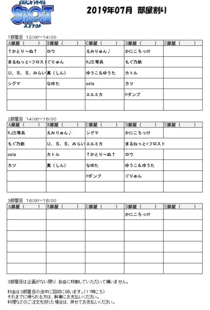 場所:まねきねこ 広島大洲店 日付:2019年07月14日(祝) 時間:12:00〜18:00 2時間3クール 予約は金曜日に変更します。土曜日の募集は上限を定める場合があります。 仮でもいいので金曜日までに表明をお願い致します。 15人以上で3部屋。部屋割りします。それ以外はフリーです。 ********************************************************** 「金曜日時点で人数変動がなければ、締め切る可能性があります。」 ********************************************************** 土日祝日フリータイム1900円(税抜き)予定です。