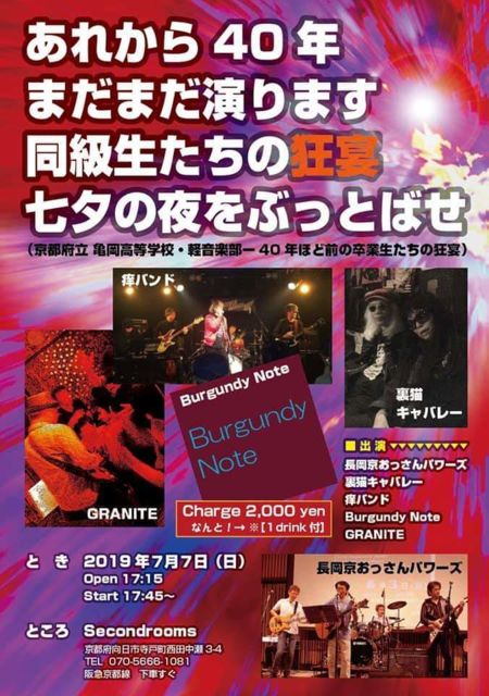 ¤³¤ó¤Ë¤Á¤Ï¡£º½É۶ѤǤ¹¡ª ¹â¹»»þÂå¤Î·Ú²»³ÚÉô¤ÎƱµéÀ¸¤¬Ëͤò´Þ¤á¤Æº£¤Ç¤â²»³Ú³èư¤ò¤ä¤Ã¤Æ¤ª¤ê¡¢¤½¤ì¤Ê¤é¤ß¤ó¤Ê¤Ç½¸¤Þ¤Ã¤Æ¥é¥¤¥Ö¤ò¤ä¤í¤¦¤È¤¤¤¦¤³¤È¤Ë¤Ê¤ê¤Þ¤·¤¿¡ª ¤È¤ê¤¢¤¨¤ºº£²ó¤Ï£µ¥Ð¥ó¥É¡¢¼·Í¼¤ÎÌë¤Ë¥é¥¤¥Ö¤ò¤ä¤ê¤Þ¤¹¡ª¤ª»þ´Ö̵¤¯¤Æ¤â»þ´Öºî¤Ã¤ÆÀ§È󤪱ۤ·¤¯¤À¤µ¤¤¡ª ----- ----- ¢£¤¢¤ì¤«¤é40ǯ¢£ ¢£¤Þ¤À¤Þ¤À±é¤ê¤Þ¤¹¢£ ¢£Æ±µéÀ¸¤¿¤Á¤Î¶¸±ã¢£ ¢£¼·Í¼¤ÎÌë¤ò¤Ö¤Ã¤È¤Ð¤»¢£ ¡ÔµþÅÔÉÜΩµµ²¬¹âÅù³Ø¹»¡¦·Ú²»³ÚÉô¡½40ǯ¤Û¤ÉÁ°¤Î´¶ÈÀ¸¤¿¤Á¤Î¶¸±ã¡Õ ¢£¤È¤ ¡¡2019ǯ£··î£·Æü(Æü) ¡¡Open 17:15 ¡¡Start 17:45¡Á ¢£¤È¤³¤í ¡¡¡Ú£Óecond