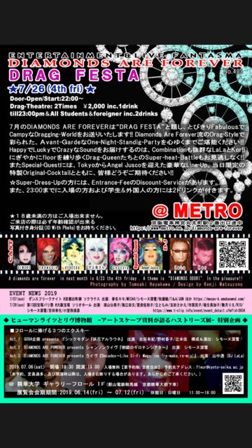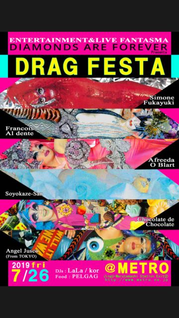DIAMONDS ARE FOREVER DRAGFESTA 2019 07 26 fri @ metro ¥·¥â¡¼¥Ì¡¡¥Õ¥é¥ó¥½¥ï¡¡¥¢¥Õ¥ê¡¼¥À¡¡¤½¤èÉ÷¤µ¤ó¡¡¥·¥ç¥³¥é¡¡ ¥¨¥ó¥¸¥§¥ë¥¸¥ã¥¹¥³¡¡(Åìµþ) DJ LaLa DJ kor http://www.metro.ne.jp/diamonds-are-forever