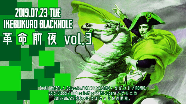 2019ǯ07·î23Æü(²Ð)ÃÓÂÞBlackHole ¡È³×Ì¿Á°Ìë vol.3" OPEN 15:30 / START 16:00 Á°Çä ¡ï3,500(+D) / ÅöÆü ¡ï4,000(+D) [act] GHAZAL / Calvaria / DANGER¡ùGANG / ¥ê¥À¥Õ¥È / ROMiO. / Cold-Blood / ¥²¥ë¥Ë¥« / Ambrosia Neo Gothic Opera [¥Á¥±¥Ã¥È] 06/29(ÅÚ) 10:00¡Áe+¤Ë¤ÆÈ¯ÇäÃæ https://eplus.jp/sf/detail/2982770001-P0030001 ¡Ä A.e+ B.¥Ð¥ó¥ÉͽÌó C.ÅöÆü·ô Æþ¾ì½çA¢ªB¢ªC [Ìä¹ç¤ï¤»]ÃÓÂÞBlackHole 03-5955-7396 Ambrosia¤Î½Ð±é¤Ï¥È¥ê¤Ç20»þ²á¤®¤«¤é¤Ç¤¹¡£ º£²óAmbrosia¤Ï¥Ù¡¼¥¹¡¢¥É¥é¥à¤â²Ã¤¨¤¿ÆÃÊ̥Хó