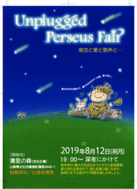º£Ç¯¤âήÀ±·²¤Îµ¨À᤬¶áÉÕ¤¤¤Æ¤¤Þ¤·¤¿ ¡Ø¥Ú¥ë¥»¥¦¥¹ºÂήÀ±·²¤ò´Ñ¤Ê¤¬¤é¤ÎÃÆ¤¸ì¤ê¥³¥ó¥µ¡¼¥È¢ö¡Ù ¤È¤¤¤¦¥¤¥Ù¥ó¥È ¡ØUnplugged Perseus Fair¡Ù¡ÊޱŽÝŽÌŽßŽ×ޏŽÞŽÄŽÞ ŽÍŽßŽÙ޾޳޽ ŽÌŽªŽ±¡Ë¤ÏËèǯȬ¥ö³Ù¤Î¶á¤¯¤Ç³«ºÅ¡£ À¶Î¤¹â¸¶¤Ë¤¢¤ë»ÜÀߤεö²Ä¤òÆÀ¤Æ¡¢¹¾ì¤ò¤ª¼Ú¤ê¤·¤Æ³«ºÅ¤·¤Þ¤¹¡£ ²»¶ÁÀßÈ÷¤ä¾ÈÌÀ¤Ê¤É¤ò»È¤ï¤Ê¤¤¡¢¤Á¤¤¤µ¤Ê¼êºî¤ê¥¤¥Ù¥ó¥È¤Ç¤¹¡£ ±éÁÕ¤Ï19:00¡Á00:00¤Þ¤Ç¡¢¤½¤Î¸å¤Ï³Æ¼«Î®À±·²´Ñ¬¤È¤Ê¤ê¤Þ¤¹¡£ ´ÑÍ÷¤Ï̵ÎÁ¤Ë¤Ê¤ê¤Þ¤¹¤Î¤Ç¡¢ ¡ùή¤ìÀ±¤ò´Ñ¤Ë¹Ô¤¤¿¤¤¤±¤É¿Í¤¬¾¯¤Ê¤¤¾ì½ê¤ÏÉ԰¤À¡£ ¡ù²È²¤äÎø¿Í¤òÏ¢¤ì¤Æ´Ñ¤Ë¹Ô¤