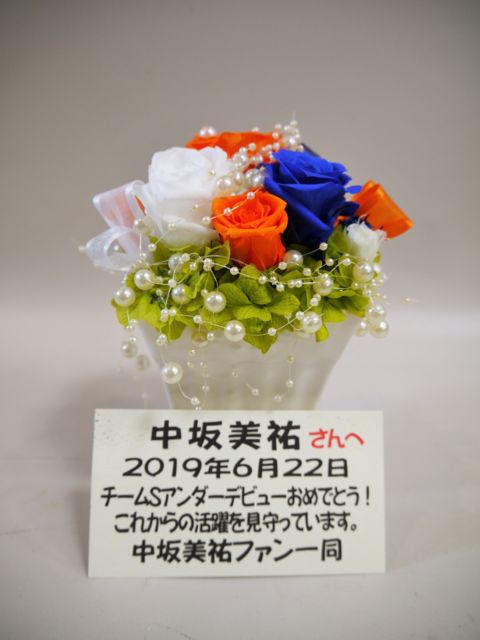 中坂美祐さんのアンダーデビューが6月22日(土)チームS 重ねた足跡公演に決定しました。 つきましては皆様からのカンパ金のご協力をいただき、当コミュニティよりお祝いのお花としてサイリウムカラーのプリザーブドフラワー(7000円)を贈らせていただこうと思います。 (他の9期生のアンダーデビューのお祝いと同じものとする予定です。) お花は6月22日のチームS公演に劇場に届くように手配いたします。 こちらの企画に賛同いただける方で費用の負担が可能な方は協力金として1口500円最大4口まで募集させていただきます。 【参加費用】