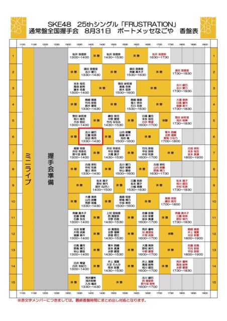 皆さま、日ごろより田辺美月さんへの応援ありがとうございます。 2019年8月31日(土)に開催されます SKE48「FRUSTRATION」通常盤全国握手会におきまして ファンミーティングを開催したいと考えます。 =============================== ■開催時間:14時30分(予定) 田辺サンの握手部である 13時30分~14時30分の枠終了後に開催いたします。 変更のある場合は、企画アカから発信いたします。 =============================== 【集合場所】 江籠裕奈さん、北川綾巴さんと一緒の田辺さんの 握手レーンが、6レーンですので 握手終了