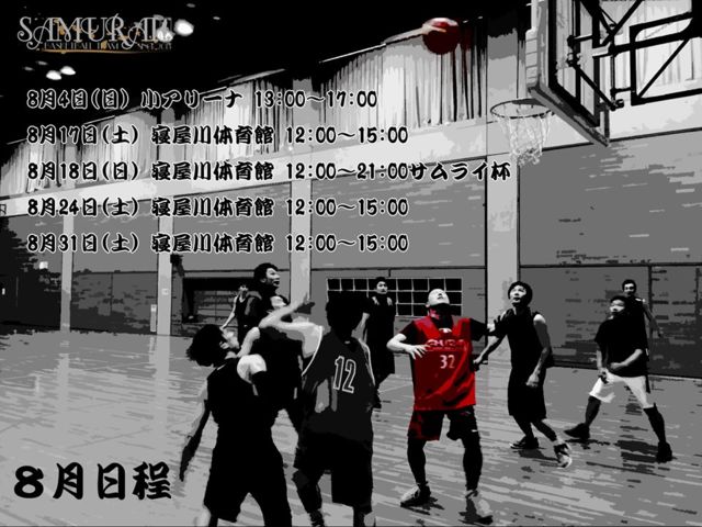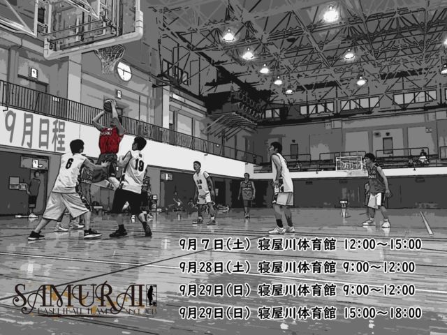2019.8.31(土)12時〜15時寝屋川市民体育館 遅刻や早退連絡してください 参加する場合は、名前性別人数を書き込みおねがいします。 軽くアップしゲームします。 チーム分けは主催者が決めています。 Aチーム 勝ちにこだわるガチバスケ Bチーム 楽しくミックスバスケ 女子の参加者多数の場合は女子のみに可能性もあります。 初参加の方は、基本的にBチームに入ってもらいます。 募集要項 18歳以上高校生、初心者不可 男女バスケ経験者 参加費500円 レベル 初級〜中級 諸注意、参加