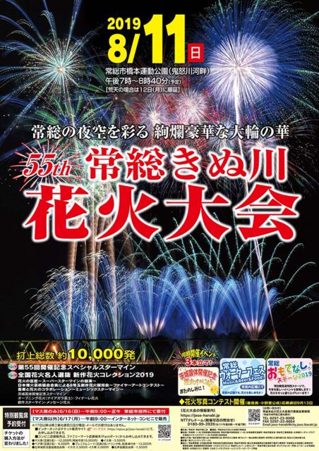 ¿å³²Éü¶½µ§Ç°¡¡Âè55²ó ¾ïÁí¤¤ÌÀî²Ö²ÐÂç²ñ´ÑÍ÷OFF²ñ³«ºÅ¤·¤è¤¦¤È»×¤¤¤Þ¤¹ http://www.joso-hanabi.jp/ ¿¼Ì뤫¤éÁáÄ«¤Ë¤«¤±¤Æ¾ì½ê³ÎÊݤ·¤Æ¡¢»²²Ã¼Ô¤Ë³Ú¤·¤ó¤Ç¤â¤é¤¨¤ë¤è¤¦´ë²è¤·¤Æ¤¤¤Þ¤¹¡£ ¡Ú³«ºÅÆü»þ¡Û ÎáϸµÇ¯8·î11Æü¡ÊÆü¡Ë ¸á¸å6»þ45ʬ¡Á8»þ40ʬ ¢¨¹ÓÅ·¤Î¾ì¹ç¤Ï¡¢8·î12Æü(Æü¡Ë¤Ë½ç±ä ¡Ú³«ºÅ¾ì½ê¡Û °ñ¾ë¸©¾ïÁí»Ô¶¶Ëܱ¿Æ°¸ø±à¡Êµ´ÅÜÀî²ÏÈÊ¡Ë ¡Ú²ñ¾ì¤Ø¤Î¥¢¥¯¥»¥¹¡Û ¡üÅ´Æ»¤Ç ´ØÅìÅ´Æ»¾ïÁíÀþ¿å³¤Æ»±Ø²¼¼Ö¡¢ÅÌÊâ15ʬ¡Á20ʬ ¡ü¼Ö¤Ç ¾ïÈØÆ»Ã«Ï¸¶IC¤Þ¤¿¤Ï·÷±ûÆ»¾ïÁíIC¤«¤é¹ñÆ»294¹æÀþ·Ðͳ¤Ç10ʬ ¡ú²ñ¾ì¼þÊÕ¤Ë̵ÎÁÃó¼Ö