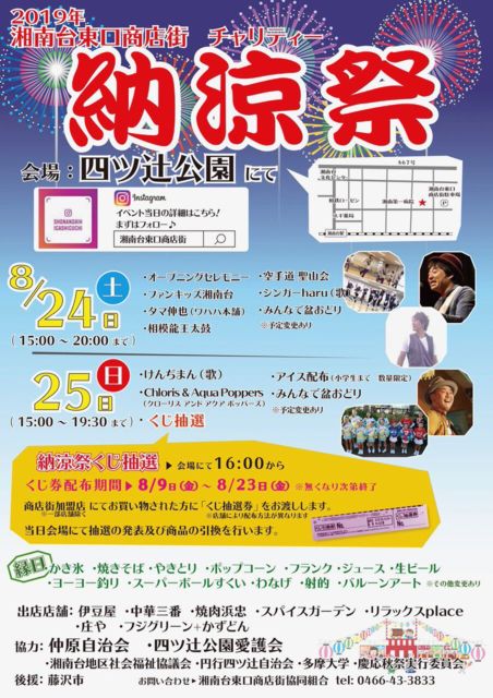 明日は、 今年も、神奈川県藤沢市湘南台の 四ツ辻公園で今週末に開催される 『 湘南台東口商店街 納涼祭 』に出演させていただきます! 明日土曜は、ポカスカジャンのタマ伸也 さんや、相模龍王太鼓 さん など 明後日の日曜は、人気の けんぢまん さんや、素敵な歌声の てくてのもり さん などが盛り上げます! 湘南台はいつも温かい人にあふれ、僕にとっても大切な素敵なところです! 一緒に夏を楽しみましょう!ぜひ遊びに来てくださいね! 「四ツ辻公園」でお待ちしています! -------------------------------- <Singer haru offici