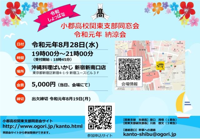 2019ǯ¤ÎËÜÉôƱÁë²ñ°ÆÆâ¤¬Å¸³«¤µ¤ì¤Þ¤·¤¿¤Í¡£ ´ØÅì»ÙÉô¤â²Æ¤ËƱÁë²ñ¥¤¥Ù¥ó¥È¤ò³«ºÅ¤·¤Þ¤¹¡£ ´ØÅì»ÙÉô¤È¤·¤Æ¤ÏËèǯ£··î£¸·î¤ËƱÁë²ñ¤ò³«ºÅ¤·¤Æ¤ª¤ê¤Þ¤·¤¿¤¬¡¢ £²£°£±£¹Ç¯¤Ï¡Ö£±·î¡×¤Ë³«ºÅ¤·¤Æ¤ª¤ê¤Þ¤¹¤Î¤Ç ¡¢£¸·î¤ËǼÎòñ¤È¤·¤Æ³«ºÅ¤·¤Þ¤¹¡£ ¤´»²²Ãĺ¤¤Þ¤¹¤è¤¦¤ª´ê¤¤¿½¤·¾å¤²¤Þ¤¹¡£ ¿½¤·¹þ¤ß¤Ï²¼µURL¤«¤é¤Ç¤¤Þ¤¹¡£ http://www.ogori.jp/kanto.html ÆüÉÕ¡§ÎáϸµÇ¯8·î28Æü(¿å) »þ´Ö¡§19»þ00ʬ¡Á21»þ00ʬ ¡¡¡¡¡¡¡Ê¼õÉÕ³«»Ï¡§18»þ45ʬ¡Ë ²ñ¾ì¡§²ÆìÎÁÍý¤Ñ¤¤¤«¤¸ ¿·½É¿·Æî¸ýŹ ½»½ê¡§ÅìµþÅÔ¿·½É¶è¿·½É4-1-9 ¿·½É¥æ¡¼¥¹¥Ó¥ë£³£Æ ²ñÈñ¡§5
