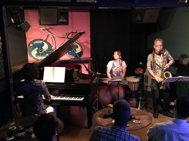9月2日(月)20:30〜23:00(2セット) Congri LIVE <出演>Congri 藤橋万記(percussion) 竹内 直(saxophone) 楠 直孝(piano) ライヴチャージ 1500円(入れ替え無し)、 テーブルチャージ 500円(ナッツ類食べ放題)、 ドリンク類 500円〜、 従いまして、ミニマム料金は2500円です。 ■当店ではconvianoでお馴染みのパーカッショニスト 藤橋万記率いるラテン・ユニット"Congri"のライヴです。 キューバ・ナンバー中心、 多彩な音色で良く歌うサックス&フルート、 炸裂するダイナミック・ピアノ、 そして変幻自在なパーカッ