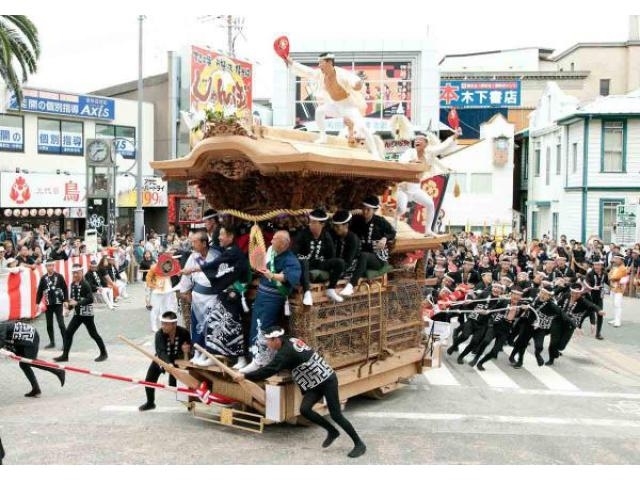 岸和田だんじり祭は、米、麦、豆、粟、稗の5穀物が沢山採れる様にと祈願し行った「稲荷祭」がその始まりと伝えられています。 https://www.city.kishiwada.osaka.jp/site/danjiri/ 今では「喧嘩祭」とも言われ、荒々しい熱気が観る者を魅了します。 9月と10月のそれぞれ2日間試験曳き、土曜は宵宮、日曜は本宮が執り行われ、見所、特徴が異なります。本宮の日曜午前9時過ぎから、岸城神社、弥栄神社、岸和田天神宮で「宮入り」が行われます。岸城神社の宮入りでは小半(こなから)坂を一気に駆け上がる「やりまわし」が行われ、祭のハイライトの
