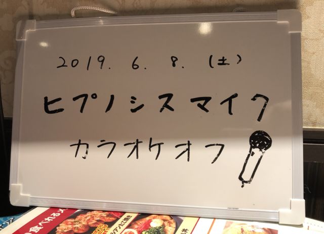 こんにちは、幹事の克晴と申します。 CD、コミカライズ、4thライブ、アプリ…拡大を続けるヒプノシスマイク。 ヒプマイ歌う仲間を増やしたい!一緒にカラオケでブチ上がりたい! そんな思いで、第2回カラオケオフ会の開催を決めました! 同志のヘッズを心よりお待ちしております! 以下詳細です! 日時:2019年9月23日(月・祝)12:00〜18:00頃 ※ドリンクバー付フリータイム 場所:カラオケマック西新宿 https://www.karaokemac.com/shop/nishishinjyuku/shop_nishishinjyuku.html フード・ドリンク持ち込