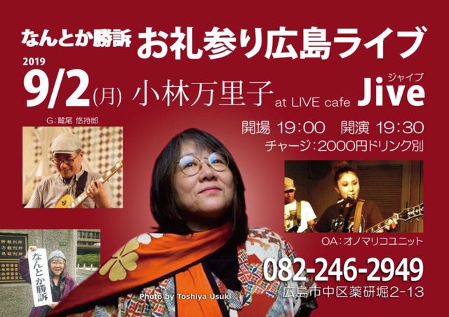 尾道・広島「なんとか勝訴 お礼参り」ツアーでございますが、 2017年にツアーをさせていただきましたオエコモバ、JIVE様にて再度お世話になる所存です。 前回のツアーでは中国地方の右も左も分からない中、シローコスリーズさんに 宿の手配から「JRおとなび」入会手続き指南、ライブハウスとの折衝、 その上ベーシストとして出演、の上にシローコーナーでのパフォーマンスまで、 何から何までお世話になりました。 しかも、観光スケジュールまで、旅行代理店でも出来ないぐらい綿密に組み立てていただき、 レンタカーの手配・運転までこなして