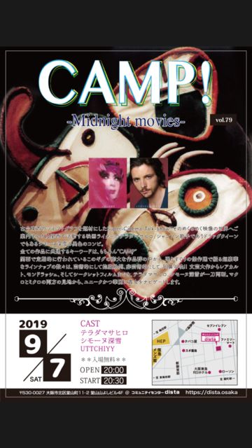 CAMP midnight movies vol.79 2019 09 07 sat 21:00¡Á22:30 @ ÂçºåƲ»³ dista ¥Æ¥é¥À¥Þ¥µ¥Ò¥í¡¡ ¥·¥â¡¼¥Ì¿¼Àã¡¡ Uttchiyy