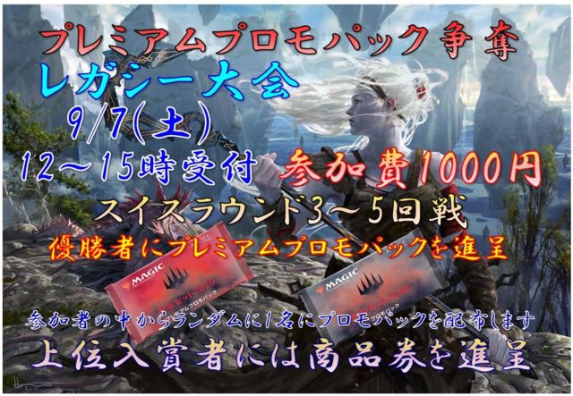 DCI¸øÇ§ ¥×¥ì¥ß¥¢¥à¥×¥í¥â¥Ñ¥Ã¥¯ÁèÃ¥¥ì¥¬¥·¡¼Âç²ñ ¤Î¤´°ÆÆâ¤Ç¤¹¡£ ¼õÉÕ¤Ï ÅöÆü¡¡12¡§00¡Á15¡§00 ¤È¤Ê¤Ã¤Æ¤ª¤ê¤Þ¤¹¤Î¤Ç»²²Ã´õ˾¤Î¾ì¹ç¤Ï¾åµ¤Î»þ´Ö¤ËÃÙ¤ì¤Ê¤¤¤è¤¦¤Ë¤´ÍèŹ¤¯¤À¤µ¤¤¡£ÅöÆü¼õÉÕ¤ÏÀèÃå½ç¤È¤Ê¤ê¤Þ¤¹¡£ »²²ÃÈñ¤Ï1000±ß¤Ç¤¹¡£ ¹½ÃÛ·Á¼°¤Ï¥ì¥¬¥·¡¼¡Ê¡ÖÁ´¤Æ¤Î´ðËÜ¥»¥Ã¥È¡×¡õ¡ÖÁ´¤Æ¤Î¥¨¥¥¹¥Ñ¥ó¥·¥ç¥ó¡×¢¨¥¢¥ó¥°¥ë¡¼¥É¡¦¥¢¥ó¥Ò¥ó¥·¥É¤Ï½ü¤¯¡Ë¤È¤Ê¤ê¤Þ¤¹¡£°ìÉô¶Ø»ß¥«¡¼¥É¤¬¤¢¤ê¤Þ¤¹¤Î¤Ç¹½ÃۤκݤϤ´Ãí°Õ¤¯¤À¤µ¤¤¡£ ¶Ø»ß¥«¡¼¥É¤Ë¤Ä¤¤¤Æ¤Ï¤³¤Á¤é¤ò¤´»²¾È¤¯¤À¤µ¤¤¢ https://magic.wizards.com/ja/game-info/gameplay/formats/legacy