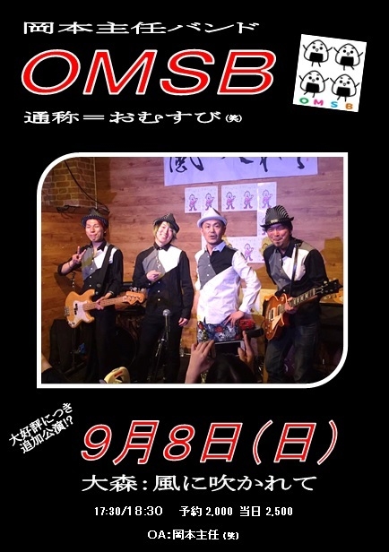 ¡ü³µÍ× £¹·î£¸Æü¡ÊÆü¡Ë Â翹¡§É÷¤Ë¿á¤«¤ì¤Æ http://oomorikazefuka.weebly.com/ Á᤯¤âºÆÅо졢£Ï£Í£Ó£Â¡Ê²¬ËܼçǤ¥Ð¥ó¥É¡Ë £Ï£Á¡§²¬ËܼçǤ(¾Ð) 17:30/18:30 ͽÌó2,000 ÅöÆü2,500 ¡üÆâÍÆ Â繥ɾ¤Î²¬ËܼçǤ¥Ð¥ó¥É¤Ç¤¹¡ª ǯ¤Ë°ìÅÙ¡ª¤Î¤Ä¤â¤ê¤¬¡¢½ô»ö¾ð¡©¤Ë¤è¤ê£µ·î¤«¤é£´¤«·îÂÔ¤¿¤º¤·¤ÆºÆÅо졪 ¤È¤Ë¤«¤¯¥«¥Ã¥³¥¤¥¤¡ª¥Ð¥Ã¥¯¤¬(¾Ð)¡£ °ìÅ٤Ǥ⸫¤¿¿Í¡¢¤½¤¦»×¤¦¤è¤Í¡© Á°ºÂ¤Ï²¬ËܼçǤ(¾Ð)¡£ ¤Ê¤Î¤Ç¡¢²¬ËܼçǤ¤òÃΤäƤ¤¤Æ¥Ð¥ó¥É¤ò¸«¤Æ¤¤¤Ê¤¤Êý¤ÏÌÞÏÀ¡£ ²¬ËܼçǤ¤ò¤¢¤Þ¤êÃΤé¤Ê¤¤¿Í¤Ç¤â¡¢°ìµ¤¤Ë²¬ËܼçǤ¤òÂδ¶¤Ç¤¤Þ¤¹¢ö
