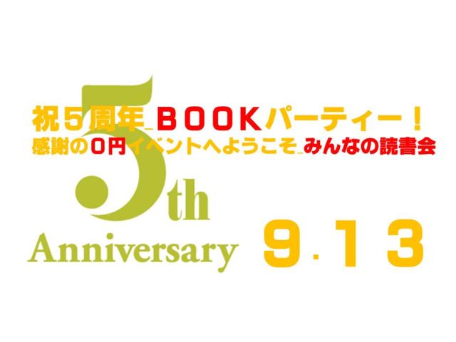 「みんなの読書会」もスタートして5年。 これまでの参加者や新しい読者との出会いをつくる感謝のイベント <BOOKパーティー>を東京・上野のROUTEBOOKSで開催します! <BOOKパーティー>には、あなたの一押しの本をお持ちください。 その本が、あなたの名刺となります。 さまざまな本・読者との出会いをつくる読書イベントです。 さらに、これまでの感謝祭の意味もこめて、 イベントへの参加費は0円とさせていただきます。 さぁ楽しい読書会へ、ようこそ! 【企画の概要】 ・あなたのおすすめの1冊を持参してき