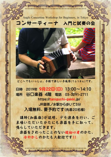 ¡¡µ®½Å¤Ê¥¹¥Ú¡¼¥¹¤ò¤ª¼Ú¤ê¤·¤Þ¤¹¡£ ¡¡¥¢¥Ë¥½¥ó¤Î¥Ð¥ó¥É¤Ç»È¤Ã¤¿¤é¡¢¤«¤Ê¤êÌÜΩ¤Ä³Ú´ï¡Ö¥³¥ó¥µ¡¼¥Æ¥£¡¼¥Ê¡×¤Î̵ÎÁÂθ³¹ÖºÂ¤ò¡¢Åìµþ¡¦¸æÃã¥Î¿å¤Î³Ú´ï²°¤µ¤ó¤Ç¹Ô¤¤¤Þ¤¹¡£ ¡¡¥Ç¥â±éÁդǤϡ¢È¾Ê¬¤¯¤é¤¤¥¢¥Ë¥½¥ó¤ò±éÁÕ¤¹¤ëͽÄê¤Ç¤¹¡£ ¡¡¤ªµ¤·Ú¤ËÍ·¤Ó¤Ë¤¤¤é¤·¤Æ¤¯¤À¤µ¤¤¤Þ¤¹¤è¤¦¡£ ¡¡¡¡¡Úµ¡Û ¡Ö¥³¥ó¥µ¡¼¥Æ¥£¡¼¥Ê¡ÊÆþÌç¤È»îÁդβñ¡Ë¡× ¡¡Æü»þ¡¡2019ǯ9·î22Æü(Æü)13:00¡Á14:10 ¡¡¾ì½ê¡¡Åìµþ¡¦¸æÃã¥Î¿å¤Îë¸ý³Ú´ï 4³¬¡¡ ¡¡Æþ¾ì̵ÎÁ¡¢Í×ͽÌó¤Ç¤¹¡£ ¡¡¾ÜºÙ¤Ï¡¢Ã«¸ý³Ú´ï¤Î¥µ¥¤¥È¤Î https://taniguchi-gakki.jp/sunday.html ¡¡¤ò¸æÍ÷¤¯¤À¤µ¤¤¤Þ¤¹¤è