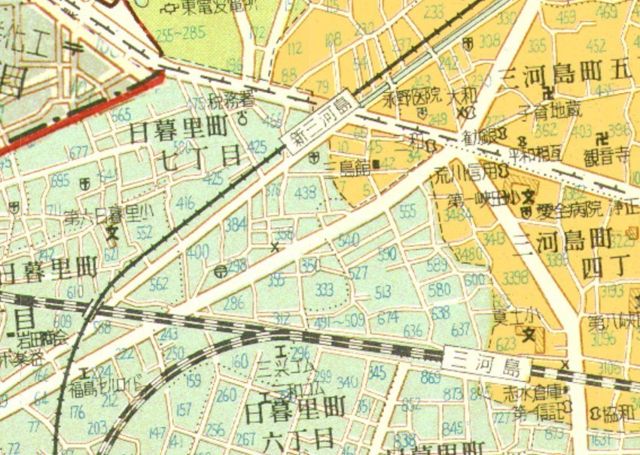 東京15区、東京市が出来た当時の範囲は今よりもっと狭い範囲でした。これが旧来の江戸の市街地に近いもの。江戸と郊外、東京市と郡部の境界。いわゆる周縁と呼ばれる場所には都市が発展するのには欠かせないものでありながら都市の真ん中には置けないものが置かれていました。それを知ることによって大都市東京の発展の軌跡を知ることができると思います。現在の荒川区は江戸の境界にあたる場所で、その中の北豊島郡三河島町にスポットライトを当ててみたいと考えています。下町ディープと言われる三河島。なぜそう呼ばれるかその所以と、東京の発展の