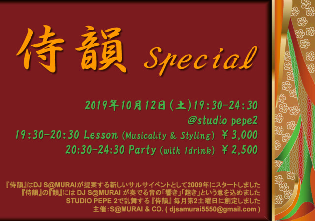 Studio Pepe2¤ÇÍðÉñ¤¹¤ë¡¡DJ S@MURAI¥ª¡¼¥¬¥Ê¥¤¥º¥¤¥Ù¥ó¥È¡Ø»ø±¤¡Ù¡¢ 10·î¤Ï12Æü(ÅÚ) ³«ºÅ¤Ç¤¹¡£