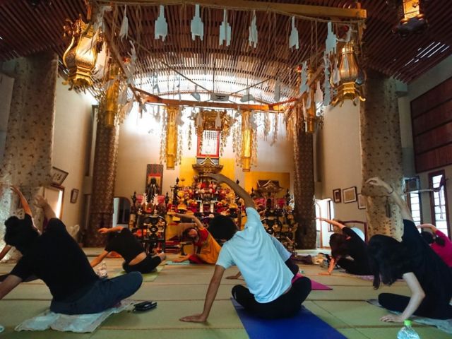 10月5日(土) 寺ヨガ(本覚寺) ヨガは、肩こり、腰痛、自分を見つめることができ、気持ちを平穏にもすることができます また、優しい気持ちになることができます。 更に、お寺でヨガをすることで普段のヨガよりも浄化の力が強くなります。 本堂で気持ちよく疲れを吹き飛ばしましょう(*^^*) 【時間】受付13時半から 開始14時 終了15時30分まで 終了後、希望者のみお寺で交流会もしましょう⭐ 【参加費】2500縁〔マットレンタル料200縁〕 (8、9月女性限定寺ヨガのみ500縁OFF) 下はたたみですのでバスタオルでも可能です。
