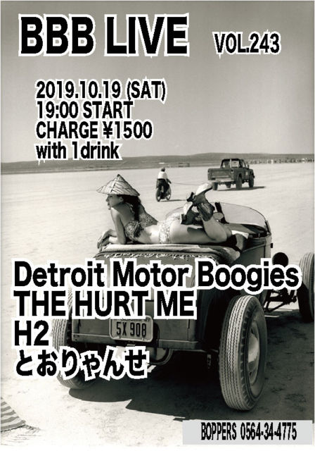BBB LIVE 243 2019.10.19 (SAT) 19:00 START CHARGE \1500 with 1drink Detroit Motor Boogies THE HURTME H2 ¤È¤ª¤ê¤ã¤ó¤»