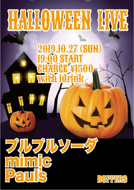 º£Ç¯¤â¤ä¤ê¤Þ¤¹¡ª¡¡¥Ï¥í¥¦¥£¥ó¡¦¥é¥¤¥Ö¡ª ¤ß¤ó¤Ê¤Ç²¾Áõ¤ò³Ú¤·¤â¤¦¡ª HALLOWEEN LIVE 2019.10.27 (SUN) 19:00 START CHARGE \1500 with 1drink ¥×¥ë¥×¥ë¥½¡¼¥À mimic Paul's