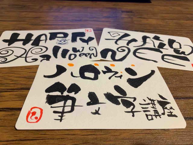 【☆募集☆】10/27(日)ハロウィン筆文字カフェ講座inとりひさ ハロウィンの週に筆文字しませんか〜 気軽に普段書かないような文字に挑戦してみませんか〜 写真に投稿してるような味のある筆文字書いてハロウィンを盛り上げませか〜 まったりおしゃべりしながら筆文字描きましょー♪ 【日時】10/27(日)13:00-15:00 【参加費】ワンコイン500 ソフトドリンク付き 【参加人数】6-8人くらい 【持ち物】 あれば、【ぺんてる】の黒の太字筆ペン 定価1000 ネットだと2割引くらいであります。 お持ちでなければお貸し