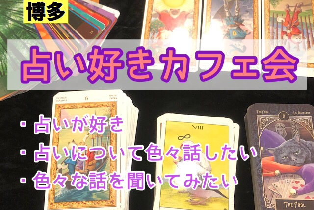 こんにちは! 『占い好きカフェ会』とは… その名の通り!!占い好きが集まるカフェ会です(^^) どんな占いが好きかや占い師かどうかは関係ありません! 占いについて話したい方 情報交換したい方 ご参加ください!! 氣軽な交流会です(^^) ※好きな占いのジャンルは問いません!! ビギナー占い師の方 または占い師として活動してみたいも情報交換などにご利用ください! ☆★イベント詳細★☆ 〜人が集まる場所作り♪♪〜九州カフェ会で友達作り交流会〜 おしゃれなカフェで おしゃれなドリンクを飲み