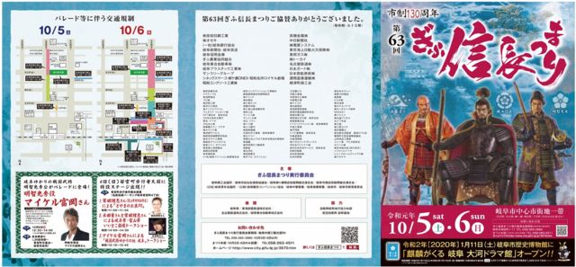 岐阜県岐阜市の中心市街地一帯で毎年開催中 天下の風雲児の織田信長! 岐阜城は交通の要所と知られ信長の居城としても有名 眼下に見下ろす市街地一帯でのおまつりです ☆ イベント情報 開催日時:2019年10月06日(日)10:00 〜 17:00 会場名称:岐阜市中心市街地一帯 開催名称:第63回 ぎふ信長まつり 〜 これぱ!in ぎふ信長まつり2 〜 ☆ イベント詳細 本部受付:柳ヶ瀬通 受付時間:メンバー / 09:45 〜 ※メンバーズカード提示 一般 / 10:00 〜 更衣室 :女性 / 柳ヶ瀬ロイヤル劇場 男性 /