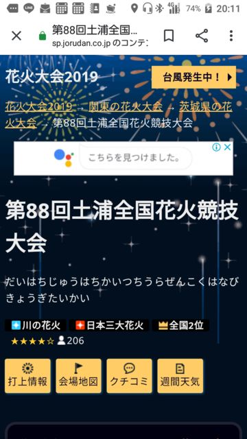 日本三大花火大会です。 競技大会の為、全弾本気です。 2ヶ月後とまだまだ先の話ですが、イベントを立ててみました。 ガッツリと人数分の場所取りはしますので、よろしければ観に行きませんか。寝っ転がって観るくらいの場所は取ります。 集合は早いですが、15時に土浦駅の改札にしたいです。 ちなみに、場所取りする場所までは徒歩約30分程度かかります。 ただ、帰りの電車の事を考えるとクルマで来られた方が無難だと思います。 駐車場は隣の荒川沖駅の方が良いと思います。出来れば昼頃までに着いた方が空きがあると思います