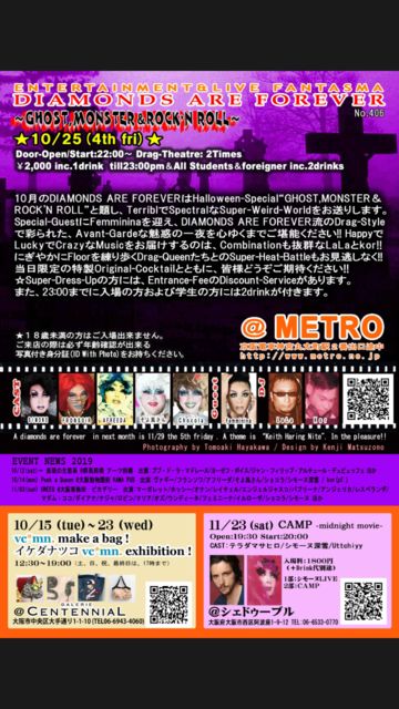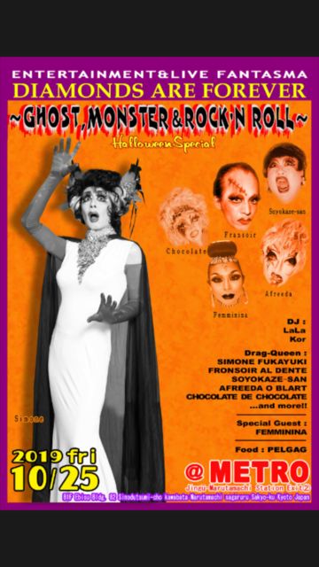 DIAMONDS ARE FOREVER Halloween Special Ghost Monster ¡õ Robk'nRoll 2019 10 25 fri 22:00¡Á @ metro µþÅÔ ¿ÀµÜ´ÝÂÀÄ® DJ LaLa DJ kor ¥·¥â¡¼¥Ì¡¡ ¥Õ¥é¥ó¥½¥ï¡¡ ¥¢¥Õ¥ê¡¼¥À ¤½¤èÉ÷¤µ¤ó ¥·¥ç¥³¥é¡¡ ¥Õ¥§¥ß¥Ë¡¼¥Ê¡¡ ¤Û¤«