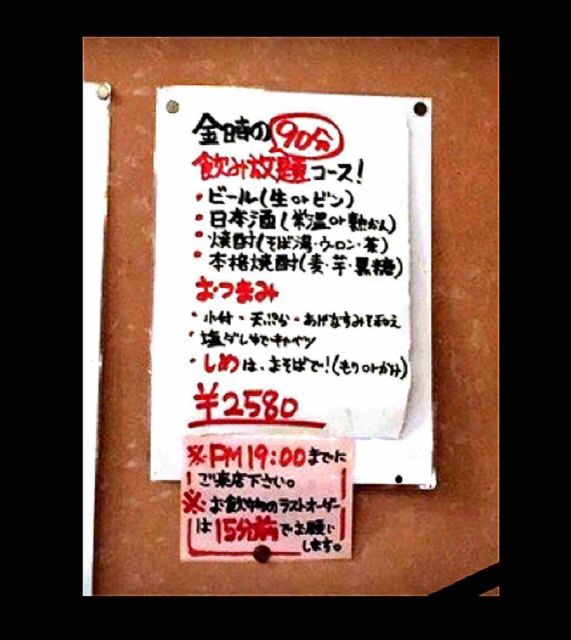 富士市のとあるお店 閑散としつつも頑張ってる商店街、その一角にある 「かつ皿」が名物で、店先に居酒屋蕎麦屋をドーンと打つ そんな昭和溢れるお蕎麦屋さん 『金時』さん ファミリー感満載で、10名でも入りゃ貸切状態 それでも大勢の胃袋を満たして来た 無くてはならない富士の老舗 そんなお店へ、久しぶりの探偵団は探検へと出向きます 静岡市内のお蕎麦屋も驚く 2580円で数種の食事と飲み放題込みと、超リーズナブル 人情よろしくのお母さん配膳で 細かい事忘れて、気軽に楽しんじゃいましょ〜 久しぶりに幹事さんが、やる気100%のお店出現! た