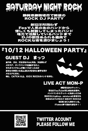 10/12-sat- SATURDAY NIGHT ROCK OPEN 20:00 1,500yen/1Drink -ROCK DJ PARTY- -GUEST DJ- まっつ -DJ- OYSTER IPPO KAZUMETAL mau mau DRAGON P.J KUSSU buzz☆ さちまる -LIVE ART- 7O5